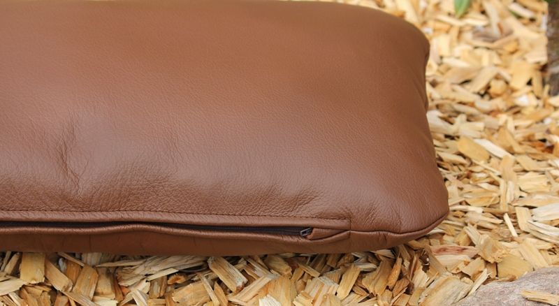 Größe und Verarbeitung: Leder-Kissenhülle (ohne Füllung) mit Steppnähten, Spezialfixierung und Zipp Garage.