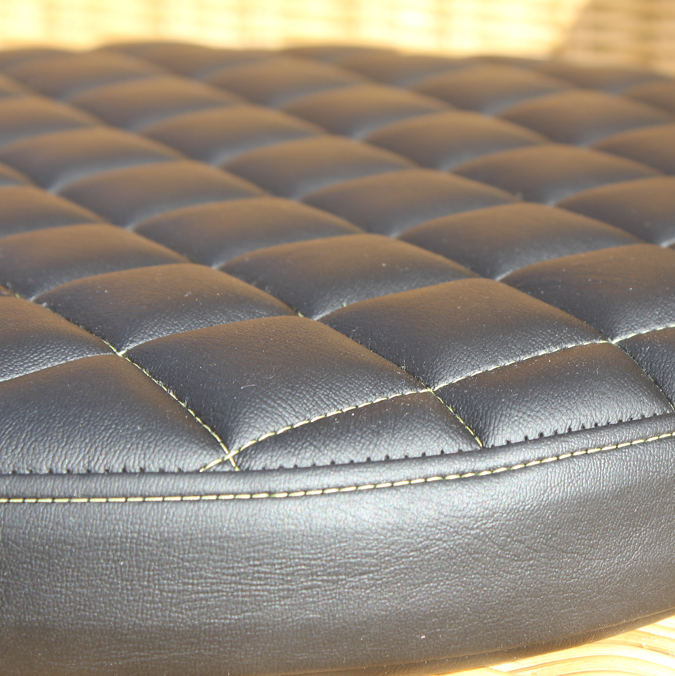 Sitzkissen Veloursstoff mit Diamantsteppung 36 x 4 cm, Farbe Schwarz mit roten Steppnähten. Schaumstofffüllung